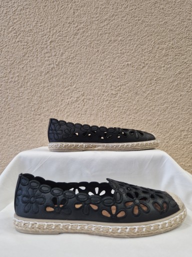 ЧЕРНЫЕ АЖУРНЫЕ ЭСПАДРИЛИ С НОСКОМ ИЗ ЭКО КОЖИ КОЛЛЕКЦИЯ PARIS Размер 39
