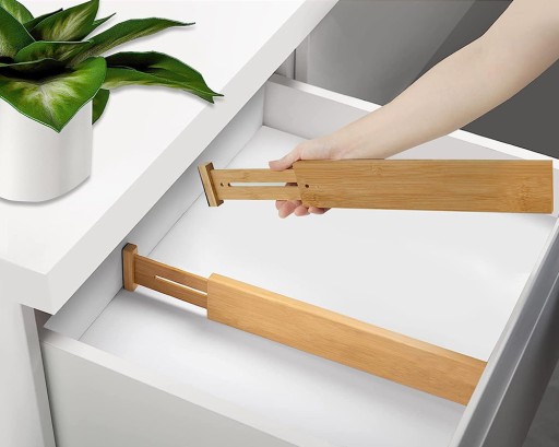 💟 Naturalne bambusowe przegródki do szuflad Regulowany 43-56cm sprężynowy organizer do szuflad 💟