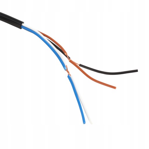 Brązowy przewód zasilający jest podłączony do bieguna dodatniego, niebieski przewód zasilający jest podłączony do bieguna ujemnego, czarny przewód zasilający jest podłączony do wyjścia sygnału, a biały przewód zasilający jest podłączony do sterownika