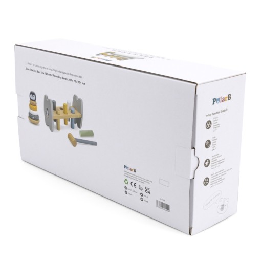 W tym zestawie z serii PolarB od marki Viga znajdziemy dwie pastelowe, drewniane zabawki: piramidkę edukacyjną oraz przebijak z młoteczkiem. Obie zabawki nie tylko wypełnią czas dziecka świetną zabawą, ale przyczynią się do rozwoju zdolności motorycznych, logicznego myślenia oraz nauki kolorów. Dzięki spędzaniu czasu z tymi zabawkami dziecko nabędzie precyzję ruchów rączek, która w przyszłości ułatwi naukę pisania.