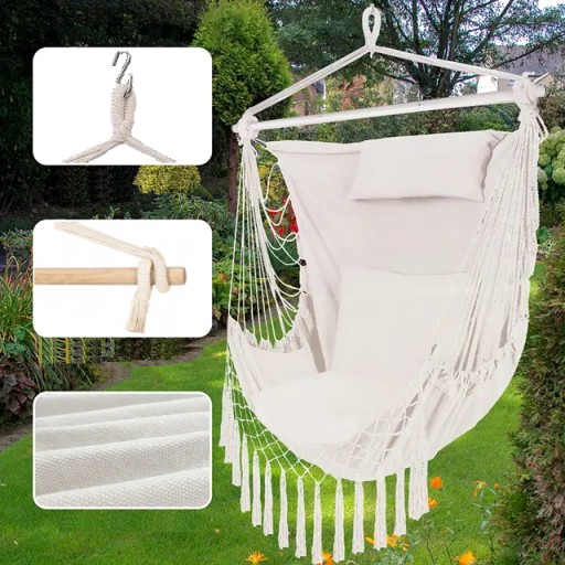 ➡️Połącz relaks zwykłego hamaka z komfortem fotela, ciesząc się spokojnym bujaniem, popijając drinka lub czytając książkę. Zapomnij o stresie codzienności.
