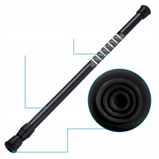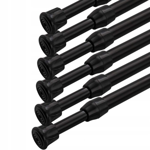 6 sztuk, regulacja od 40 do 70 cm, średnica 1,3 cm, kolor czarny. Drążek teleskopowy bez wiercenia i wysuwany, antypoślizgowa guma na obu końcach.