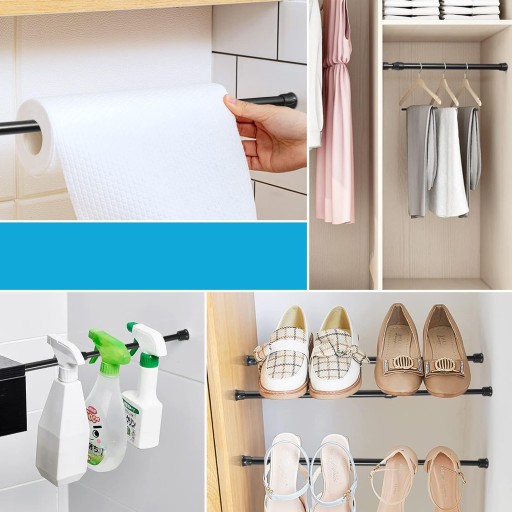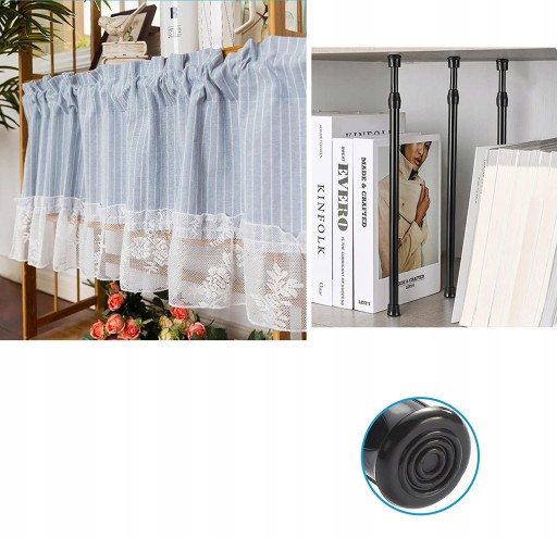 Drążek do zasłon pomysłów na wiele projektów DIY, takich jak kuchnia, firanki, szafa, szafa na ubrania, małe okna, regał na książki, zasłony z siatki kuchennej, drążek do szafy, oddzielne artykuły kuchenne, regał na buty, barkeeper, łazienka, kemping, teleskop, mocowanie sufitu, szafa, ukośny dach