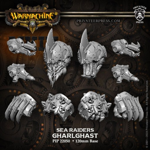 Primal horrors beyond compare, the towering Gharlghasts dominate their harsh environs so utterly as to make even the Orgoth fear the places where they tread. When disturbed, these terrifying monstrosities lash out with such ferocity that they have even brought the whole of the Orgoth capital, Drak Orgoroth, to its knees. Now bound for the first time to the will of the blood-soaked Sea Raider warlords through the application of cruel mechanikal augmentation supplanting the Gharlghasts’ native nervous systems, these hulking brutes are poised to be unleashed upon the armies and habitations of western Immoren. Catastrophically powerful combatants in the wild, those enslaved by the Orgoth are also armed with all manner of lethal and destructive blaze-fueled weaponry grafted directly into their flesh and bone. Woe unto those who must face these ravening horrors on the battlefield, for their raw power is matched only by unrivaled chaos of their savage nature.