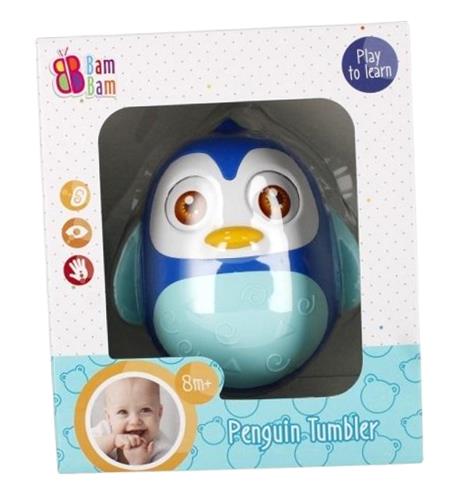 WAŃKA WSTAŃKA PINGWINEK BAM BAM zachwyci malucha słodkim spojrzeniem i opływowym kształtem, zachęcając go do interaktywnej zabawy. Jak przystało na wańkę wastańkę zabawka chwieje się na boki, lecz nigdy nie przewraca. Po wychyleniu samoistnie odzyskuje równowagę i powraca do pionowej pozycji wyjściowej. Bujając i kołysając się na boki wydaje przy tym stłumione odgłosy uderzających się o siebie dzwoneczków poruszając przy tym oczami. Jednostajne chwianie się pingwinka zachęca dziecko do aktywności, rozwoju zdolności manualnych, stymulując także jego wyobraźnię. Zabawka usprawnia rozwój słuchu, wzroku oraz zdolności motorycznych. Przeznaczona od 8 m-ca. Wymiary/waga/baterie: wymiary produktu (dł. x wys. x gł.) [cm} 12x13x12, waga produktu (kg.) 0,21 kg .Wymiary opakowania ( dł. x wys. x gł.) [cm] 16x19x11, waga opakowania (kg.) 0,33 kg. Nie wymaga zasilania bateriami. Pakowana w kartonik z otwartym okienkiem