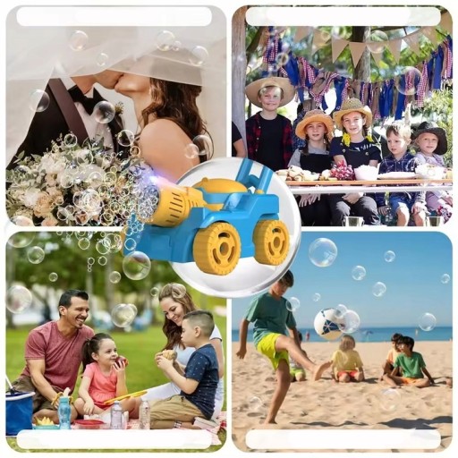 Nasza kosiarka na bańki mydlane to prawdziwa magia w Twoich rękach! Wyposażona w potężną wyrzutnię z 12 otworami, tworzy niesamowitą ilość baniek, zamieniając każdy ogród w kolorową krainę. Dodatkowo, dzięki wbudowanemu światełku LED, bańki mienią się tysiącem kolorów, co sprawia, że zabawa staje się jeszcze bardziej fascynująca, nawet przy słabym oświetleniu. To idealny sposób, by każde popołudnie i wieczór były pełne radości!