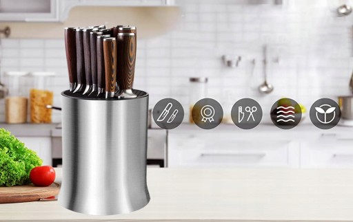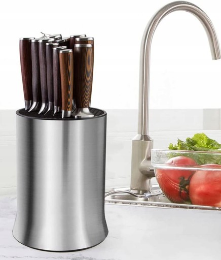 � Ten stojak na noże ze stali nierdzewnej może pomieścić 16 noży kuchennych, 1 parę nożyczek i 1 stal do ostrzenia (może pomieścić ponad 16 małych i cienkich noży).