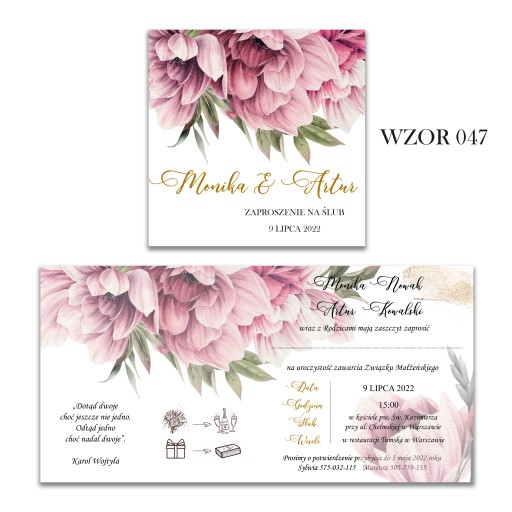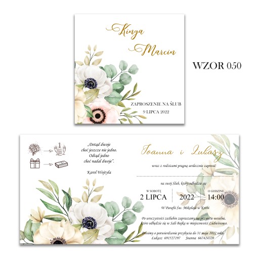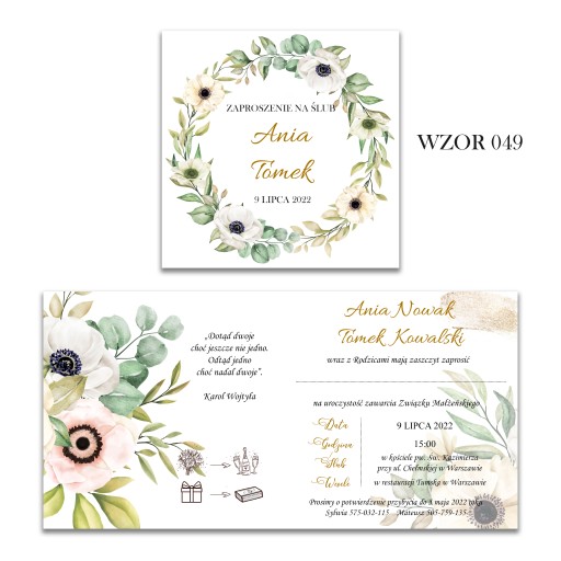1szt ZAPROSZENIA NA ŚLUB WESELE PRSZYJĘCIE KOPERTA KWIATKI WZORY 042-050
