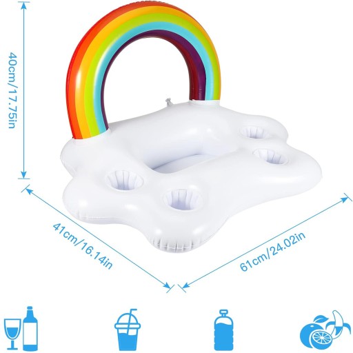 - 1 x nadmuchiwany uchwyt na napoje Rainbow Cloud