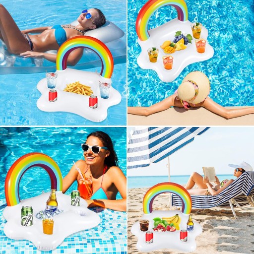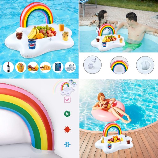 DMUCHANA TĘCZA WYSPA DO DRINKÓW PODSTAWKA / NADMUCHIWANY PŁYWAJĄCY UCHWYT NA NAPOJE