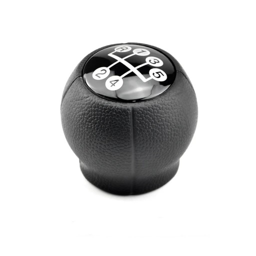 - Estetyczny wygląd: Gałka jest koloru czarnego z błyszczącą nakładką oraz jasnoszarym schematem biegów (5 biegów + R), co dodaje wnętrzu samochodu elegancji i nowoczesności.
