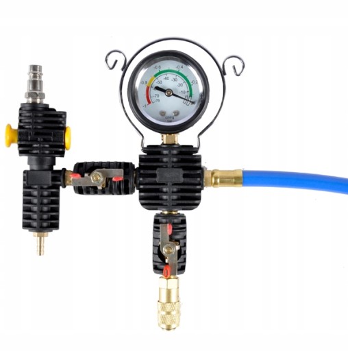 Opis produktu: Urządzenie do dokonania szybkiego napełnienia układu chłodzenia poprzez wytworzenia podciśnienienia, po wcześniejszym opróżnieniu całego ukłądu chłodzenia.