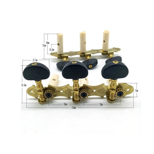 Uniwersalny zestaw: Zawiera wszystkie niezbędne elementy do montażu kluczy do gitary klasycznej: 2 x metalowe listwy z kluczami (3 prawe, 3 lewe), śruby montażowe. Listwy do montażu w dwóch rzędach.