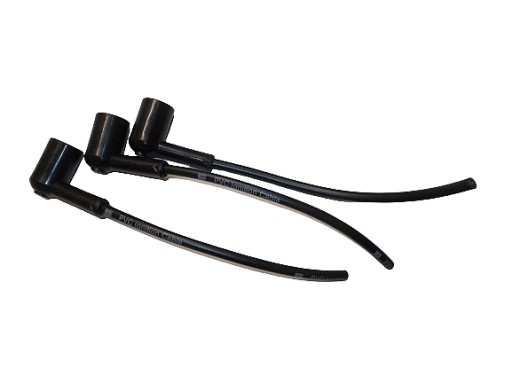 Nowe przewody zapłonowe z fajkami. W zestawie 3 przewody o długości ~17,5cm z fajkami świec zapłonowych.