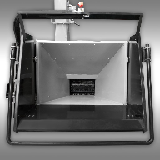 Rębak posiada szeroki wsad na materiał ( 114x75 cm) który równocześnie na czas transportu można złożyć. Walce pobierające materiał są osłonięte w sposób uniemożliwiający pochwycenie użytkownika.