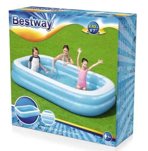 Basen Dmuchany Rodzinny Prostokątny Bestway 262 x 175 cm Solidny