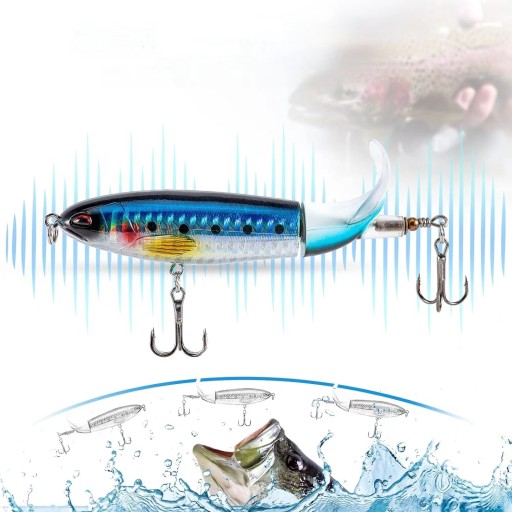 ☑️ Zestaw przynęt wędkarskich basowych wykorzystuje konstrukcję obrotowego ogona ostrza, która zapewnia ciężkie rozpryskiwanie, gdy porusza się po powierzchni, powoduje hałas i zamieszanie, którego ryby nie mogą zignorować. Konstrukcja obracania się jest jak prawdziwy rybi ogon. Sprawia, że całe ciało przypomina prawdziwą rybę, przez co łatwiej jest oszukać inne ryby do ugryzienia przynęty plopper.