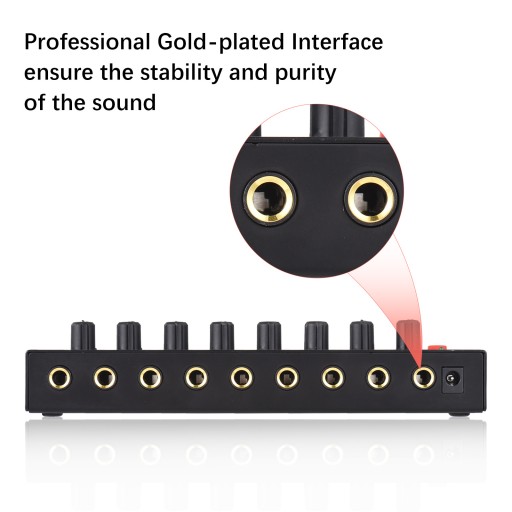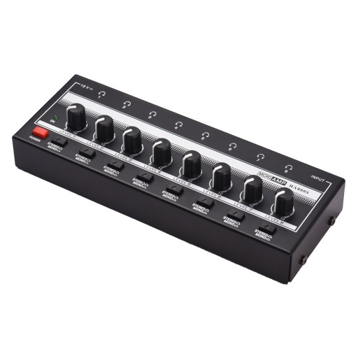Wyposażony w 8 kanałów wyjściowych słuchawek i 1 kanał wejściowy.