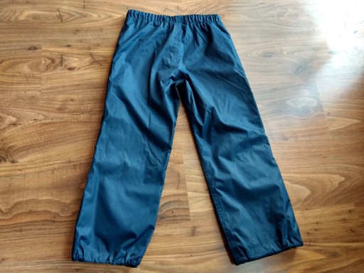 granatowe nieprzemakalne przeciwdeszczowe i przeciwśniegowe spodnie na pasku z gumą dodatkowo pas ściągany stoperem dół nogawek ściągany gumą ze stoperami stan idealny- jak nowe (raz ubrane) wymiary szer w pasie max-37 cm szer bez naciągania-31 cm dł -74 cm dł nogawki od kroku-53 cm