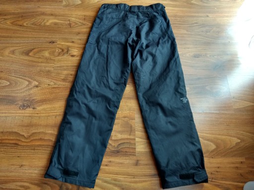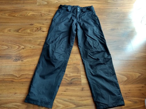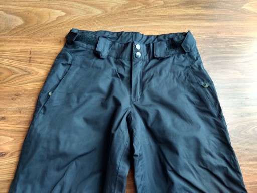 czarne nieprzemakalne spodnie przeciwdeszczowe i przeciwśniegowe na pasku po bokach pasa listwy z rzepem do regulacji z przodu zapinane na zamek i napy z przodu 2 kieszenie na zamek na dole nogawek listwy z rzepem do regulacji stan idealny- jak nowe ( 2 razy ubrane - spodnie są podpisane) WYMIARY dł spodni-91 cm dł nogawki od kroku-70 cm szer w pasie max-36 cm