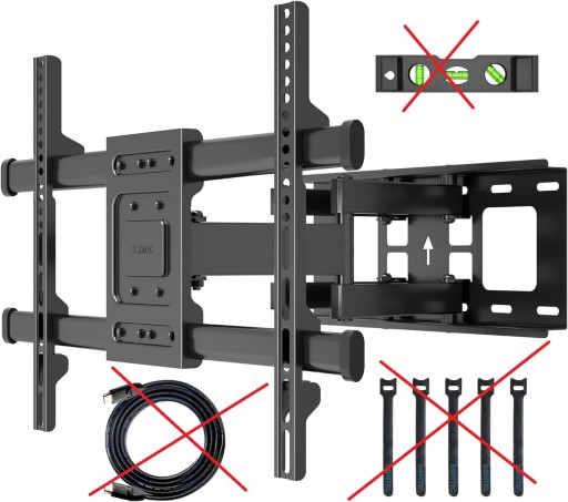 Oszczędność miejsca - nasz uchwyt ścienny do telewizora można odsunąć do 65 mm od ściany i wysunąć maksymalnie na 390 m od ściany, oszczędzając cenne miejsce. Ten uchwyt został zaprojektowany tak, aby zajmował niewiele miejsca. Charakteryzuje się płaską konstrukcją, która jest elegancka i nowoczesna. Zarządzaj kablami za pomocą kabla HDMI o długości 1,8 m i 5 opasek kablowych, aby zachować schludny wygląd.