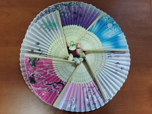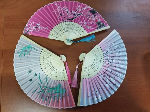 Wachlarze w różnych kolorach i wzorach. Różnią się także rozmieszczeniem wzoru oraz kolorem frendzelka.