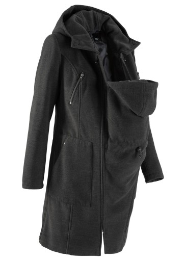 Informacje dodatkowe: Płaszcz ciążowy z wstawką na nosidełko i tunelem do regulacji obwodu.