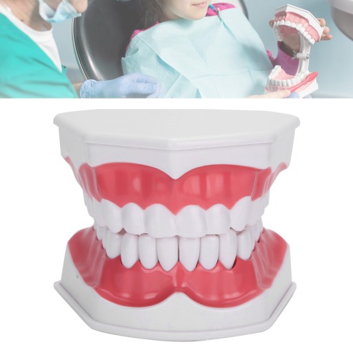 1. Ten model jest 2 razy większy niż normalna jama ustna. Rozmiar tego modelu to 12 x 12 x 9 cm / 4,7 x 4,7 x 3,5 cala. Składa się z 28 zębów stałych, które są umocowane w całej jamie ustnej.