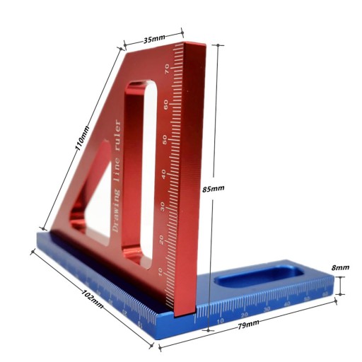 Линейка 45/90 градусов Деревообрабатывающая линейка Столярные квадраты Угол синий