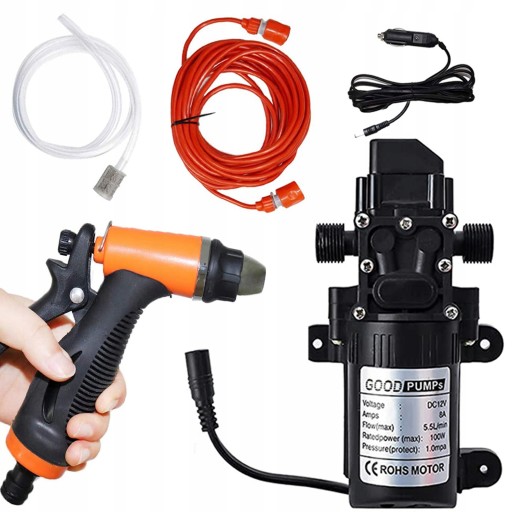 POMPA NA WODĘ 12V ZESTAW MYJKA CIŚNIENIOWA DO SAMOCHODU OGRODOWA + PISTOLET