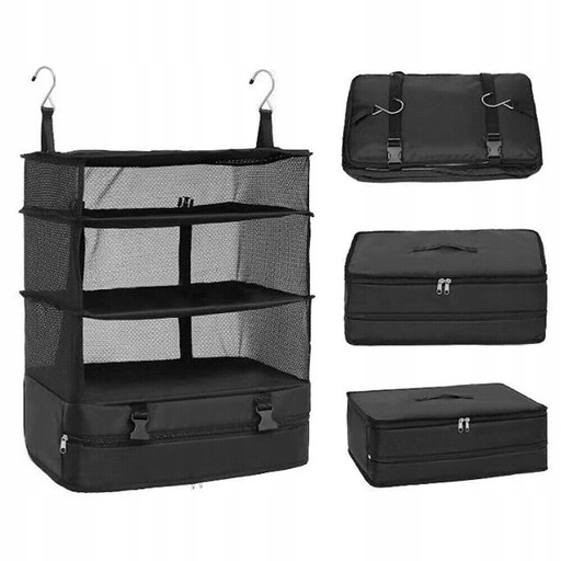 ✅ Oszczędza do 30% miejsca podczas pakowania Podróżuj bez pakowania i rozpakowywania Dla większego porządku w walizce Z haczykami do zawieszenia