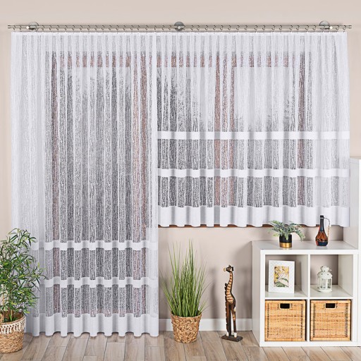 Firana o splocie siatkowym, można wieszać na wilgotno bez prasowania