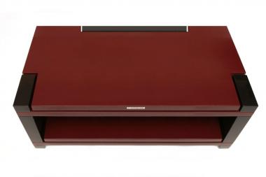 Stolik czteronożny, dwupoziomowy. Wykończenie - połysk fortepianowy. Podwójne blaty o grubościach 2 x 30 mm są separowane przez układ BBS. Układ BBS posiada właściwości kinematyczne oraz dynamiczne umożliwiające ,,pływanie" izolowanych mas na boki w stosunku do osi systemu, przy jednoczesnym zachowaniu punktowego podparcia. Układ zapewnia także możliwość poziomowania blatów.