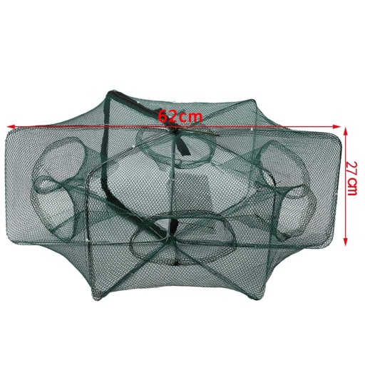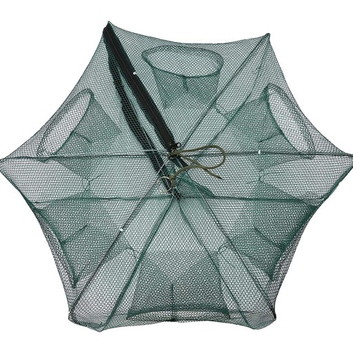 - Sieć rybacka ma konstrukcję z sześcioma wejściami, idealną do połowu toby, węgorza, kraba, homara, strzebli, krewetek i raków. W tej sieci rybackiej zastosowano sześć solidnych stalowych wsporników, dzięki którym sieć jest wystarczająco mocna.