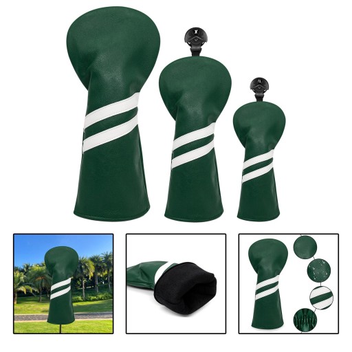 3x Pokrowiec na głowę golfa z wymiennym ochraniaczem na numery w kolorze zielonym