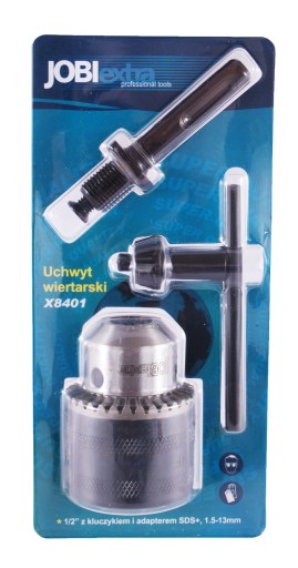 Wymienny uchwyt wiertarski zaciskowy zębaty z kluczykiem i adapterem JOBIextra X8401 to narzędzie idealne do mocowania na trzpieniu wiertarskim. Jest wykorzystywany w wiertarkach ręcznych i stojakowych, a dzięki adapterowi SDS+ umożliwia umieszczenie zaciskowego uchwytu wiertarskiego w młotowiertarkach z mocowaniem SDS+.
