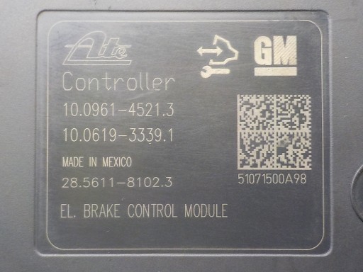 NUMER BLOKU HYDRAULICZNEGO : OPEL 13347808 ABT ATE 10.0212-0541.4