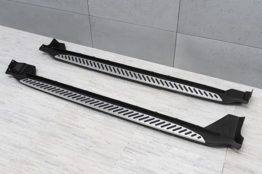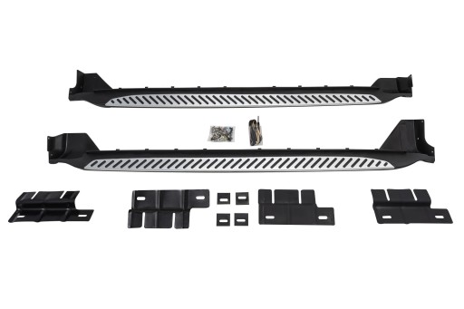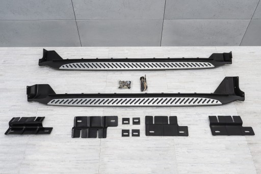 W zestawie komplet stopni bocznych (prawy i lewy), elementy montażowe oraz instrukcja. Progi montowane są na fabrycznych punktach montażowych. Montaż stopni nie wymaga wiercenia dodatkowych otworów! Zalecamy profesjonalny montaż w warsztacie (z doświadczenia wiemy że najlepiej skorzystać z usług zakładu lakierniczego lub blacharskiego ponieważ to te zakłady zajmują się najczęściej montażem listew, dokładek oraz stopni, więc montaż dla tych zakładów jest czynnością intuicyjną).