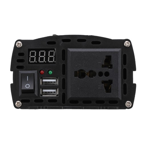 2. Dwa porty USB: Falownik jest wyposażony w dwa porty USB, co pozwala na jednoczesne ładowanie dwóch urządzeń. Jest to idealne rozwiązanie do zasilania smartfona, tabletu lub innych urządzeń USB w podróży.