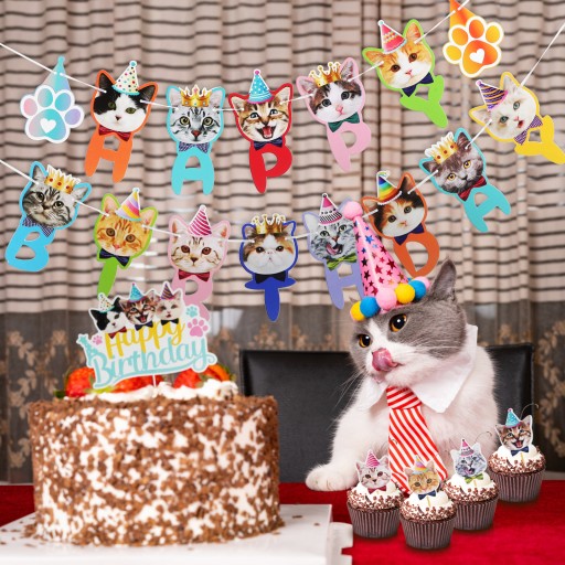 ✅ Znakomity design: dekoracje urodzinowe są w jasnych kolorach i dodają świątecznej atmosfery przyjęciu urodzinowemu Twojego kota.
