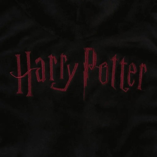Czarno-bordowy, ciepły szlafrok męski z motywem filmów "Harry Potter" oraz herbem jednego z jego Domów-Gryffindor.