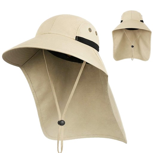 - Męska czapka przeciwsłoneczna ma szerokie rondo z filtrem UPF 50+ i dużą klapkę na szyję, która chroni nie tylko twarz, ale także twarz, uszy i szyję przed kurzem słonecznym, pyłkami, małymi owadami latającymi z komarami i nie tylko uprawiają zajęcia na świeżym powietrzu, takie jak wędkarstwo, piesze wędrówki, podróże, biwakowanie i ogród.