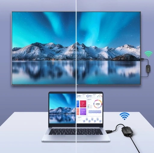 Za pomocą nadajnika i odbiornika EDUP WD9905 możesz łatwo przesyłać wideo oraz dźwięk 1080P ze źródła (np. komputera, laptopa, smartfonu, Play Station 5, Xboxa) na duży ekran lub projektor.