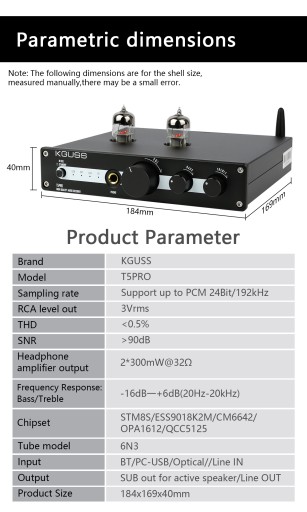 KGUSS T5pro Przedwzmacniacz lampowy typu „wszystko w jednym” Bluetooth