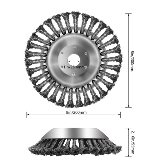 Skręcona szczotka do kół szprychowych wykonana jest z dwuwarstwowych, pogrubionych tarcz ze stali nierdzewnej i odpornego na zużycie drutu ze stali sprężynowej o średnicy 10 mm, który jest mocny i trwały. Drut stalowy nie jest łatwy do odpadnięcia.