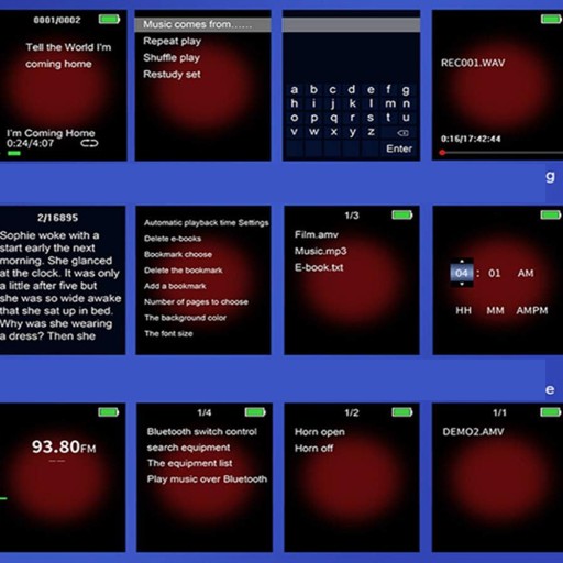 - Funkcja nagrywania, użyj dyktafonu do nagrywania głosu lub muzyki, wbudowany mikrofon, może rozpocząć nagrywanie automatycznie po wykryciu dźwięku. Dzięki czytnikowi e-booków możesz skopiować swoje ulubione e-booki do pamięci i odtwarzać je na ekranie. Możesz dodać zakładki, wybrać rozmiar i kolor czcionki.