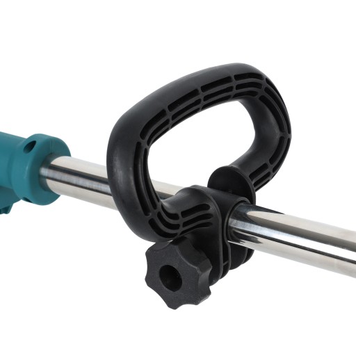 Akumulatorowy zjadacz chwastów, wyposażony w regulowany drążek teleskopowy, umożliwia dostosowanie do różnych wysokości, co ułatwia i oszczędza pracę.