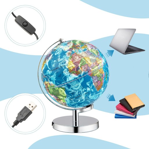 Podświetlane globusy świata ze stojakiem, 9.5-calowy obrotowy 3 w 1 globus świata z gwiazdami konstelacji, lampka nocna LED, edukacyjny globus geograficzny do klasy, biura, dekoracyjny, do nauki dla dzieci