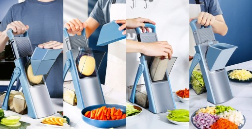 Nasza krajalnica o dużej pojemności 5 w 1 pozwala bezpiecznie kroić, rozbierać, kroić w kostkę i julienne warzywa w kilka sekund, ponad 40 różnych cięć nie wymaga zmiany ostrzy, ten kuchenny artefakt do siekania jest idealny do krojenia ziemniaków, pomidorów, ogórki, marchewki i inne.