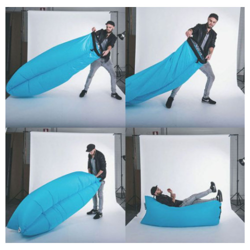 Dzięki tej dużej, nadmuchiwanej, niebieskiej pufie stworzysz wygodne siedzenie dla siebie gdziekolwiek będziesz.